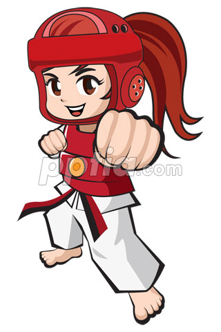 > 일러스트/AI > 취미/스포츠/레저 > 태권도 도복입고 자세 취하는 여자어린이