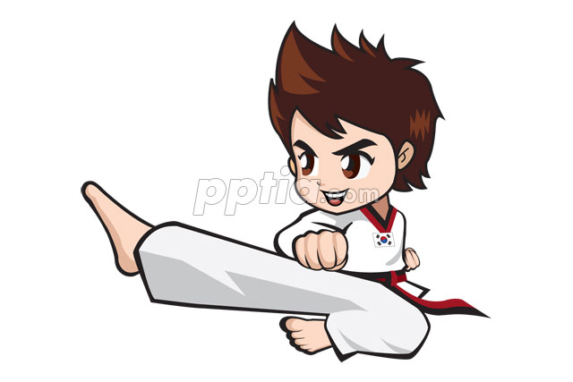 | 태권도 도복입고 날라차기 하는 남자어린이 |
