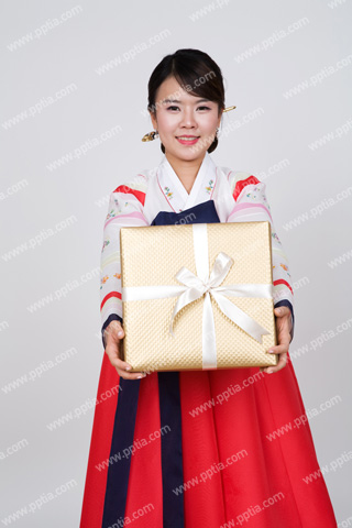 | 한복입은 여성이 선물 들고 있는 모습 |