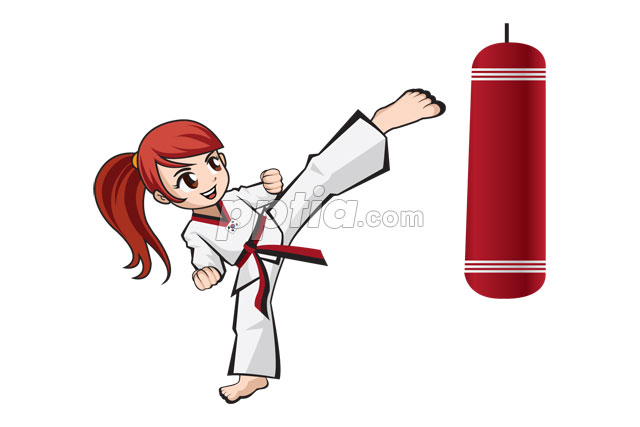 | 태권도 도복입고 발차기 하는 여자어린이 |