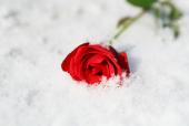 눈 위에 장미꽃 한...